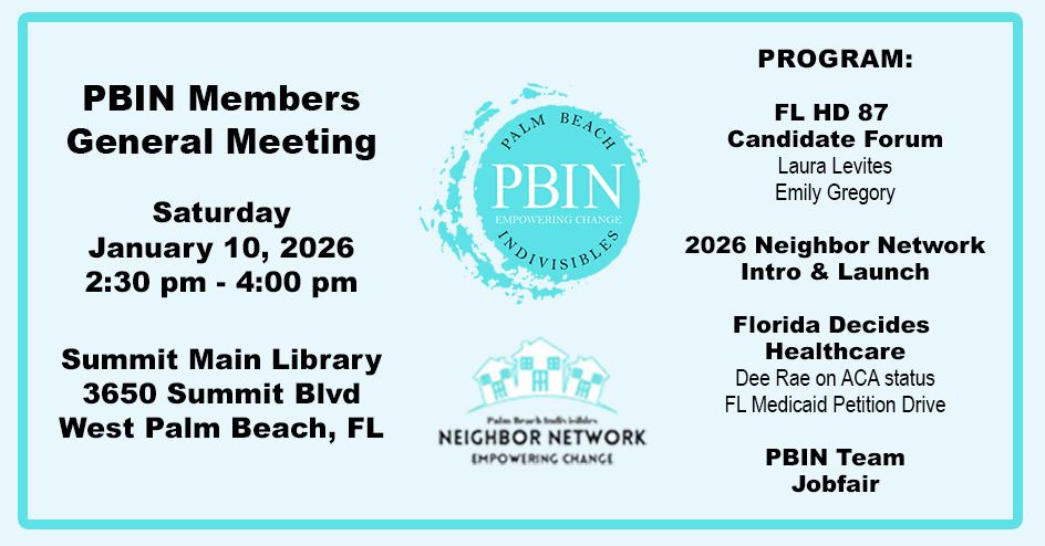 Palm Beach Indivisibles – Local group, which I am a member, sets up a lot of local actions. They planned and financed both the caravan and Meyer amphitheater on rump’s birthday.