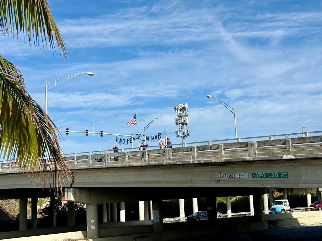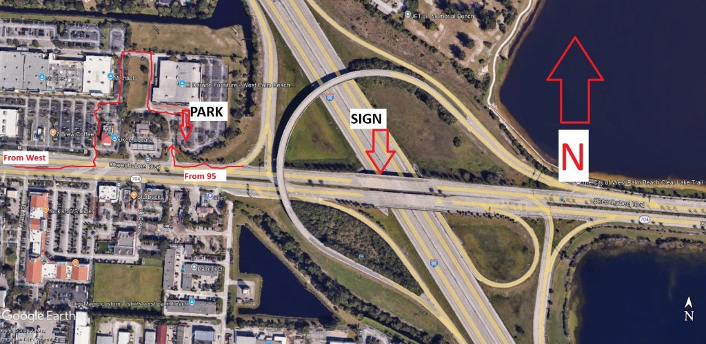 Thursday 11/6/25. South side of Southern Blvd. over I-95. We had the sign up from 9ish till 11. Close to 14,000 cars passed by on 95.